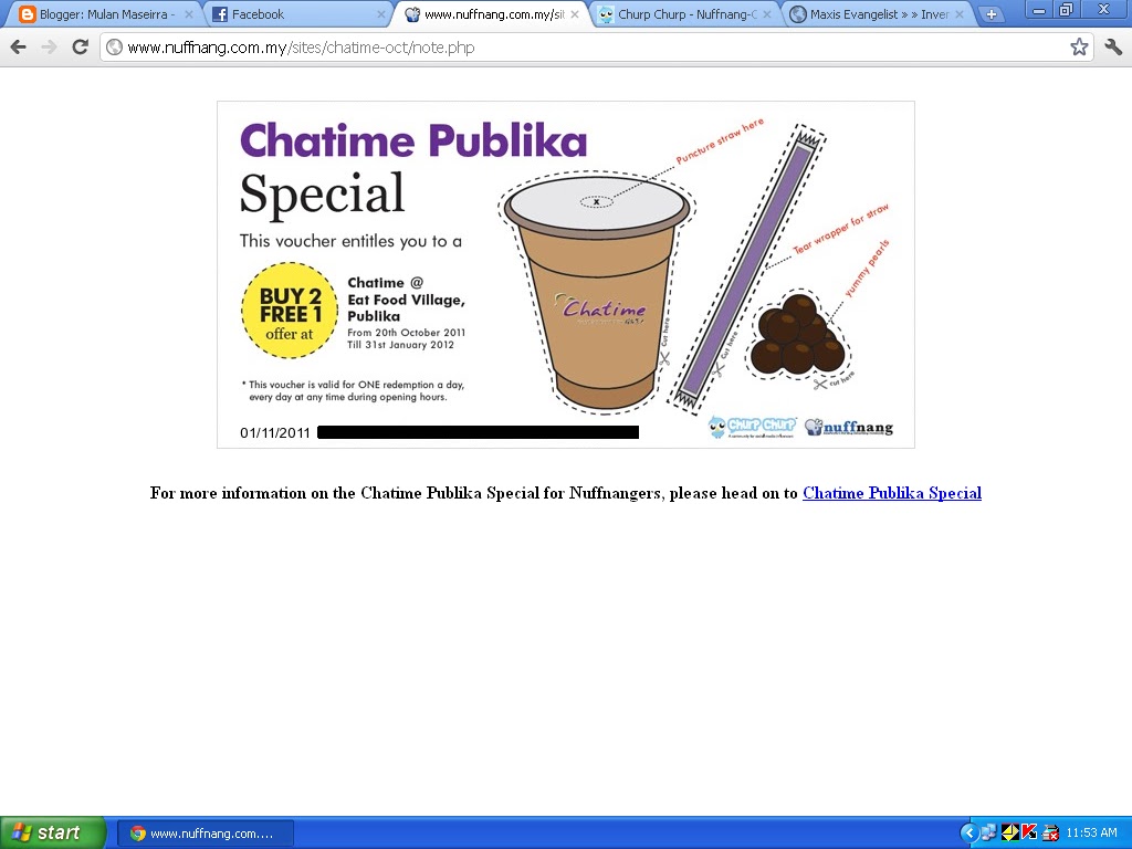 Date: 5 November 2011 Time: 3.00pm – 5.00pm Venue: Chatime @ Eat Food village, Publika, Solaris Dutamas